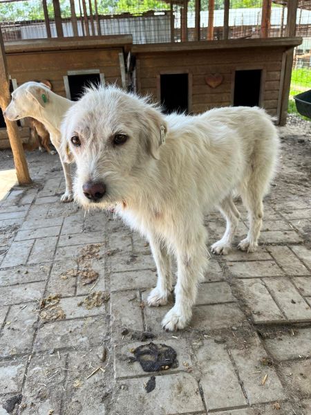 Diese zauberhafte, zarte Hündin zeigte sich äußerst zutraulich und menschenbezogen. Sie genoss die Streicheleinheiten in vollen Zügen und wich uns nicht mehr von der Seite. Beim Streicheln kann man beinahe jede Rippe spüren, weil sie so dünn ist. Zudem leidet sie unter sichtbaren Hautproblemen, was sich an den kahlen Körperstellen zeigt. Am linken Vorderbein scheint sie eine alte, schlecht verheilte Verletzung aufzuweisen und auch Bisspuren am Körper sind Zeuge vom harten Alltag im Shelter. Beim Laufen weist sie hinten ein unrundes Gangbild auf. Für eine Hündin in ihrem Alter wirkte sie auf uns zu ruhig. Für sie wünschen wir uns dringend eine zeitnahe Ausreisemöglichkeit und ein neues Zuhause, sodass sie dieses harte Leben hinter sich lassen kann.