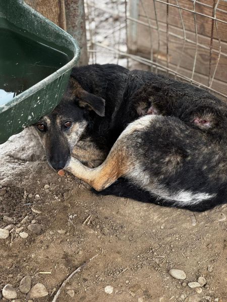 In ihrem gemischten Kennel hat sie es sehr schwer, die Wunden zeigen es deutlich.