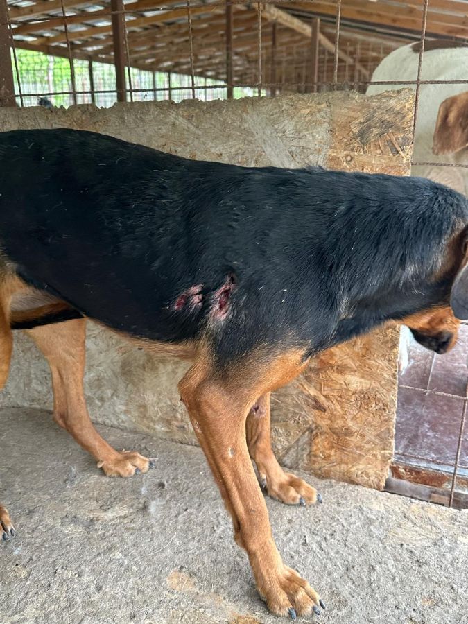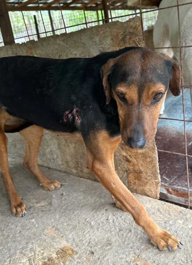 Zwei Jahre hat die zarte Endra im Shelter ausgehalten und sich irgendwie durchgekämpft. Nun wurde sie jedoch mehrfach gebissen und hat dabei einige Verletzungen erlitten. Sie befindet sich inzwischen im Vethouse, wo sie liebevoll medizinisch versorgt wird.