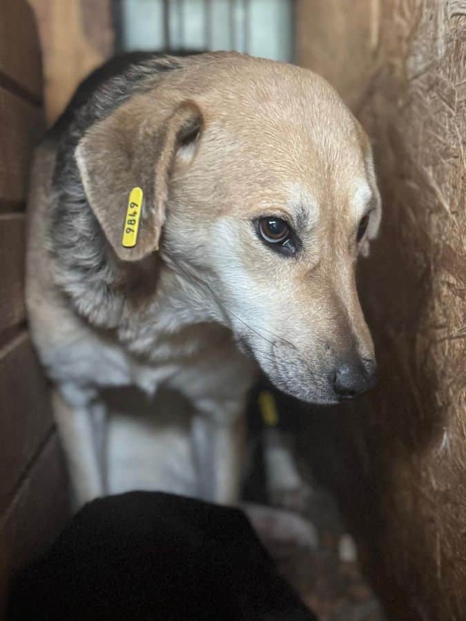 Die wunderschöne EPONA ist total überfordert und versteckte sich hinter der Hütte, als wir den Kennel betraten. Sie sitzt nun schon über 2 Jahren im Shelter und keiner hat sie bis jetzt gesehen. Heute hat sie ihre Chance genutzt und ist ein klein wenig über ihren Schatten gesprungen. Wir konnten sie unter Bedrängung anfassen und streicheln, genießen konnte sie es aber noch nicht. Auch die mitgebrachten Leckerchen konnten sie nicht überzeugen.
