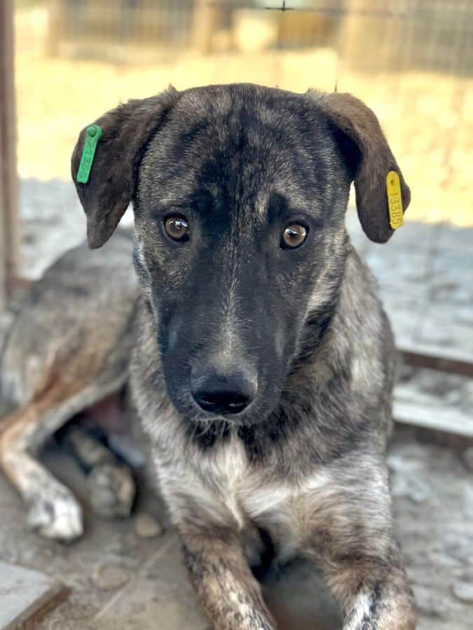 FARID sitzt zusammen mit Rüden und Hündinnen in einem Kennel. Dort scheint er viele Freiheiten den anderen Hunden gegenüber zu genießen.