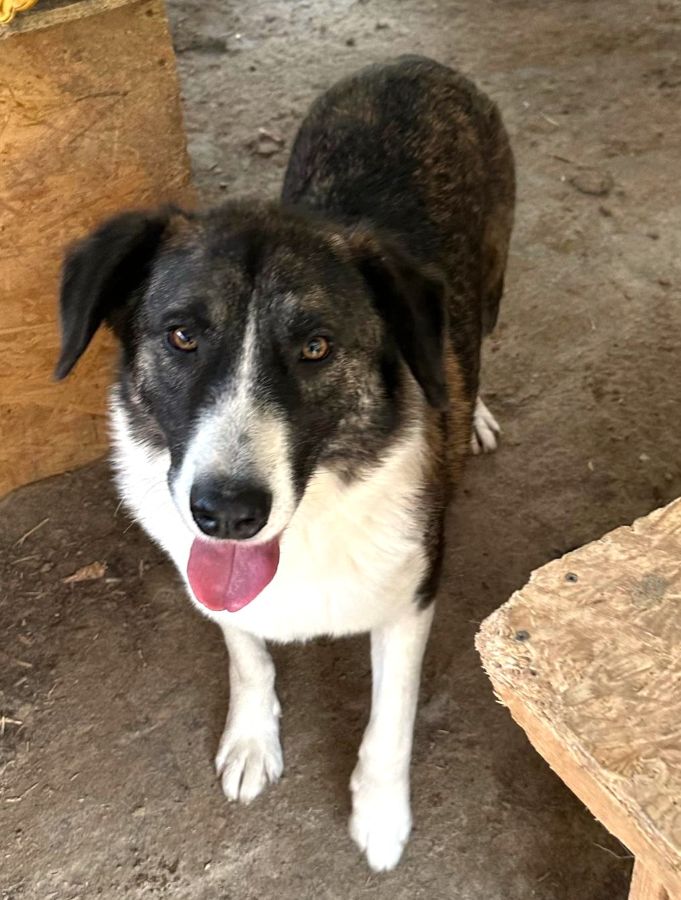 Update 04/24: Farley liess sich auf dem Hüttendach sehr gut anfassen und genoss die Streicheleinheit von Kopf bis Rute sehr. Er wirkte sehr gelassen auf uns und in seiner Hundegruppe ist er verträglich und freundlich.