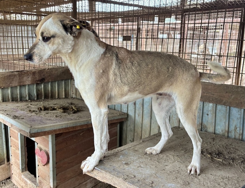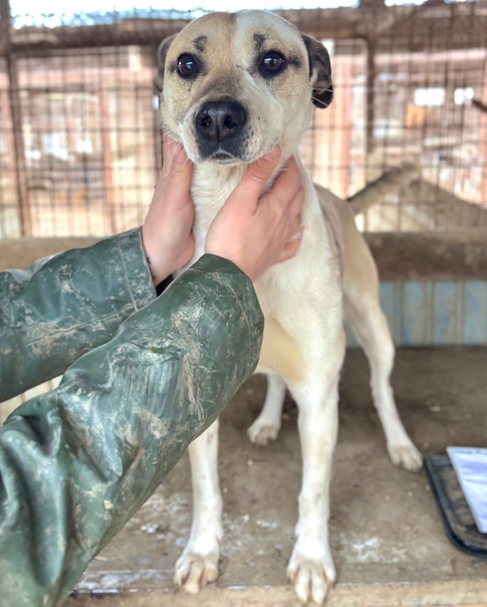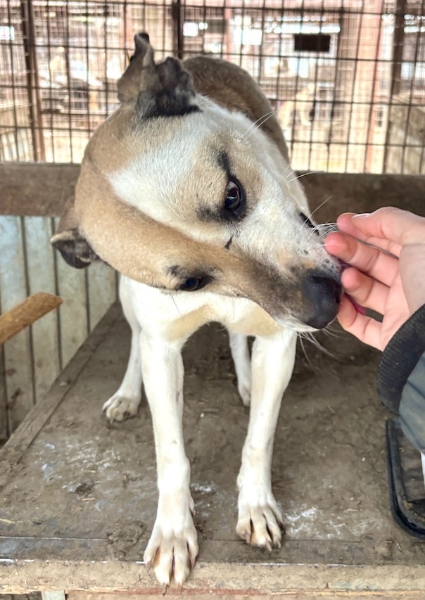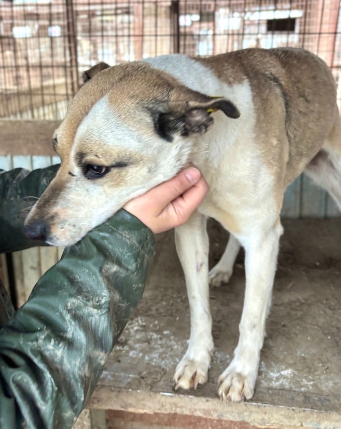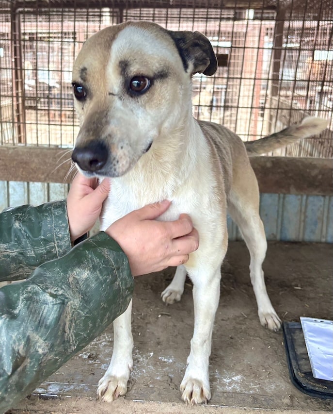 Unsere süße FINNYA mit ihrer tollen Fellzeichnung hofft inzwischen seit einem langen Jahr vergeblich im riesigen Shelter auf ihre Chance und ist mittlerweile in einen Außenkennel umgezogen. Es geht ihr sichtlich besser, sie ist nicht mehr zu dünn, sieht toll aus und zeigte sich bei unserem Besuch direkt sehr freundlich und aufgeschlossen. Gern ließ FINNYA sich streicheln, war ganz aus dem Häuschen und freute sich rührend über die willkommene Abwechslung im tristen Alltag. Ihren Kennel teilt sie sich verträglich mit einem zarten Rüden. Wir wünschen FINNYA, dass sie nun endlich von ihren Menschen gesehen wird und auf der Sonnenseite ankommen darf.