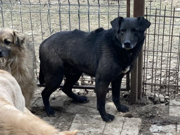 FINTUS zeigte sich zunächst mutig und verbellte uns am Kennelzaun. Als wir den Kennel betraten, zog er sich jedoch erst einmal in die Hütte zurück. Nach kurzer Zeit ließ er sich daraus hervorholen und beobachtete uns anschließend aus sicherer Entfernung. Er ist noch sehr unsicher im direkten Kontakt und braucht Menschen, die ihm Sicherheit geben und ihn ruhig an neue Situationen heranführen.