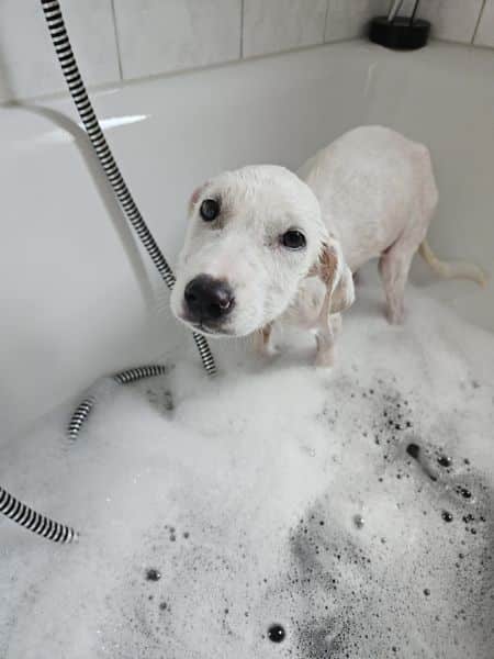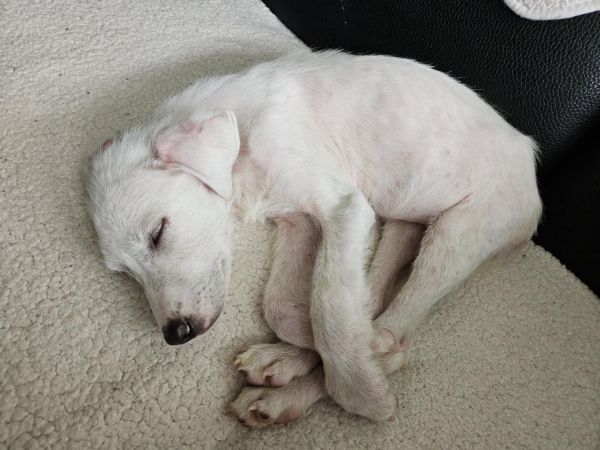 Leider hatte die kleine Hündin bis jetzt keinen guten Start ins Hundeleben, im rumänischen Tierheim rangewachsen, kam sie recht dünn und mit kaum Fell auf ihrer Pflegestelle in Deutschland an. Durch die neue saubere Umgebung, das gute Futter und die tolle Fürsorge hier in Deutschland nimmt sie an Gewicht zu und das Fell wächst schon toll nach.