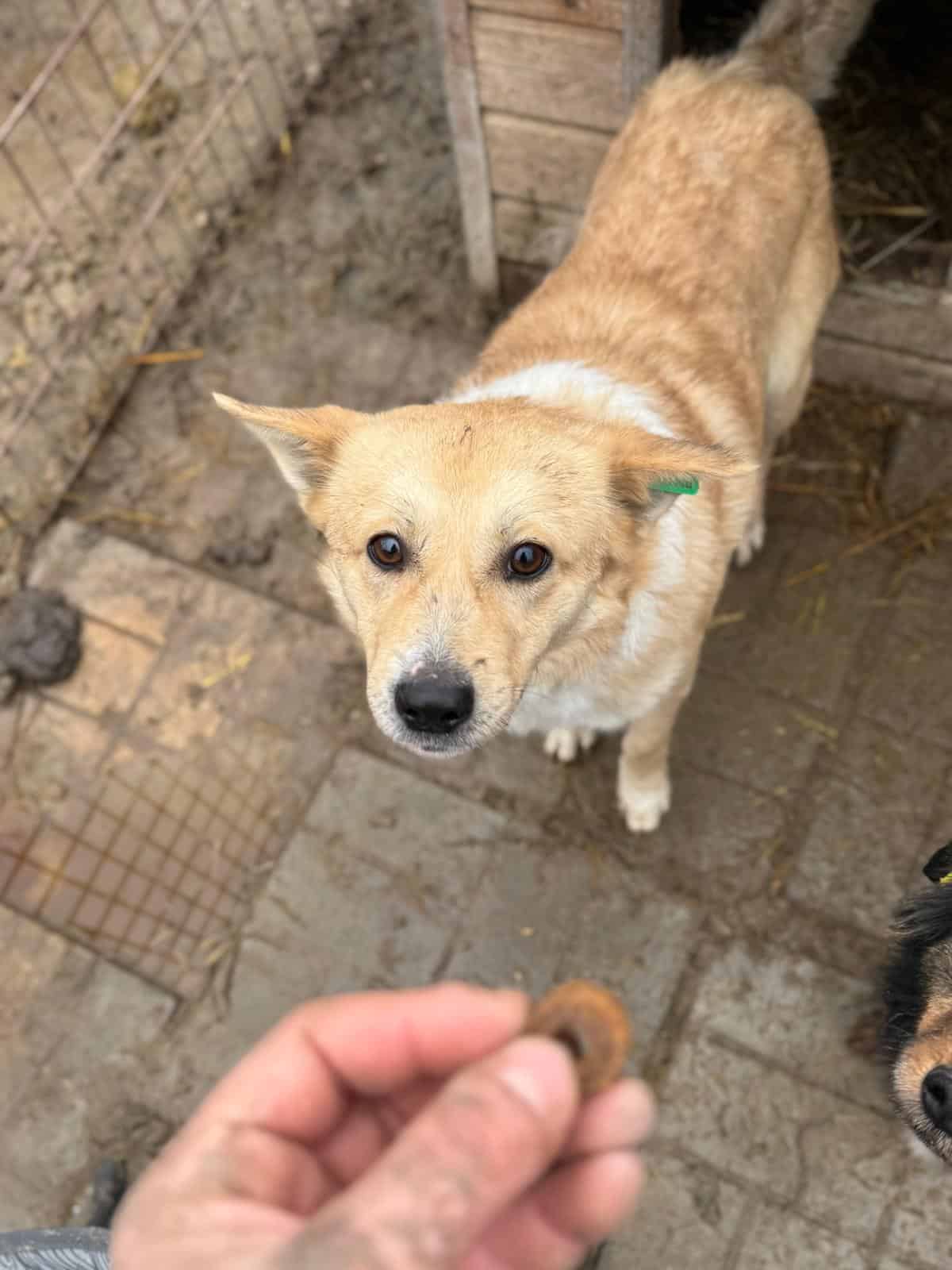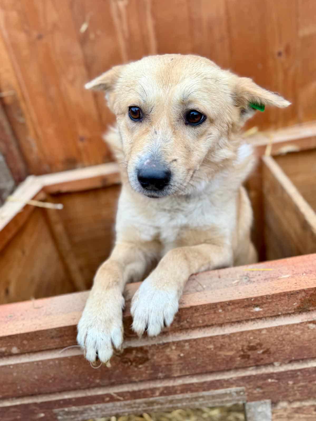 Dieser Rüde ist neu im Shelter. Zunächst lag er entspannt in seiner Hütte und beobachtete uns, bis er sich schließlich entschloss, diese zu verlassen, um sich sehr sanft bei uns Streicheleinheiten abzuholen. Er zeigte sich sehr lieb, sanft und zugänglich. Ein Hund, der Nähe genießt, ohne aufdringlich zu sein. Er macht insgesamt einen ausgeglichenen, freundlichen Eindruck und berührte uns mit seiner sanften Art. In seinem gemischten Rudel zeigt er sich verträglich. Er wurde vor Kurzem kastriert. Wir konnten feststellen, dass seine Kastrationsnarbe entzündet ist und informierten die Tierärztin. Wer schenkt diesem zauberhaften Rüden einen Platz, an dem er ankommen darf?