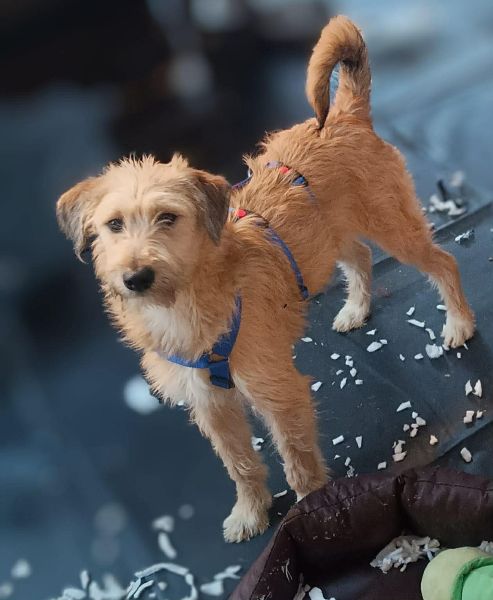 | Wesen & Zutraulichkeit (Character & Trustworthiness) | welpentypisch (typical for puppies), verspielt (playful), freundlich (friendly), neugierig (curious), überall anfassbar (touchable everywhere), anfassbar (touchable), nimmt Leckerchen (takes goodies), taut schnell auf (thaws quickly), benötigt Eingewöhnungszeit (takes time to settle in) |