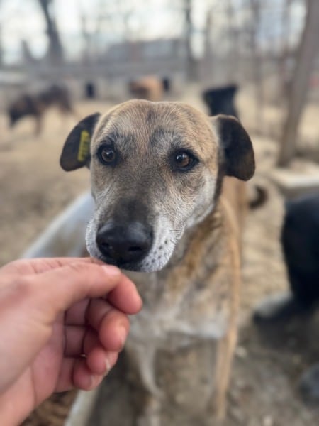 Die Beschreibung von Fleury ist weiterhin aktuell. Sie zeigt sich als freundliche und neugierige Hündin, die unsere Leckerchen sehr gern angenommen hat. Vorsichtig ließ sie sich anfassen, wobei man merkte, dass ihr diese Nähe noch ungewohnt ist – immer wieder wich sie kurz zurück. Dennoch blieb sie die ganze Zeit in unserer Nähe und suchte von sich aus den Kontakt zum uns.