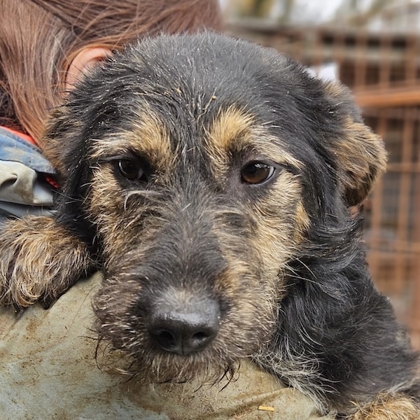 | Wesen & Zutraulichkeit (Character & Trustworthiness) | welpentypisch (typical for puppies), verspielt (playful), offen (open), freundlich (friendly), neugierig (curious), überall anfassbar (touchable everywhere) |