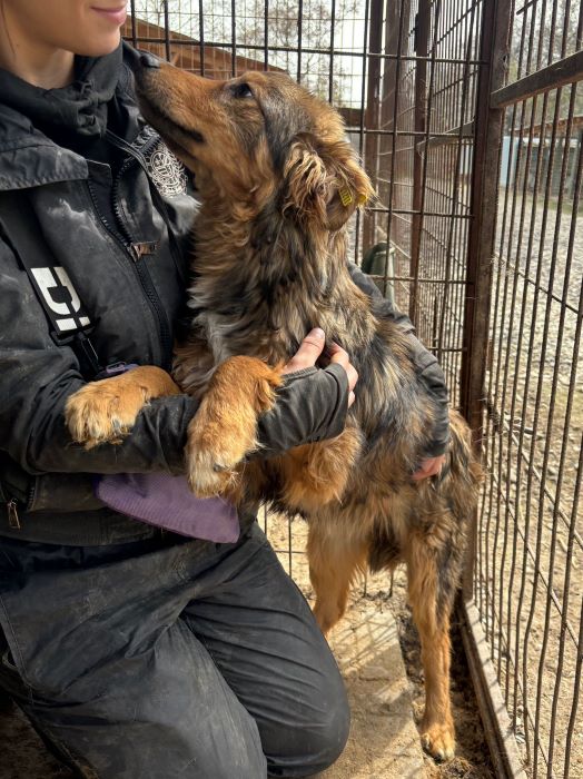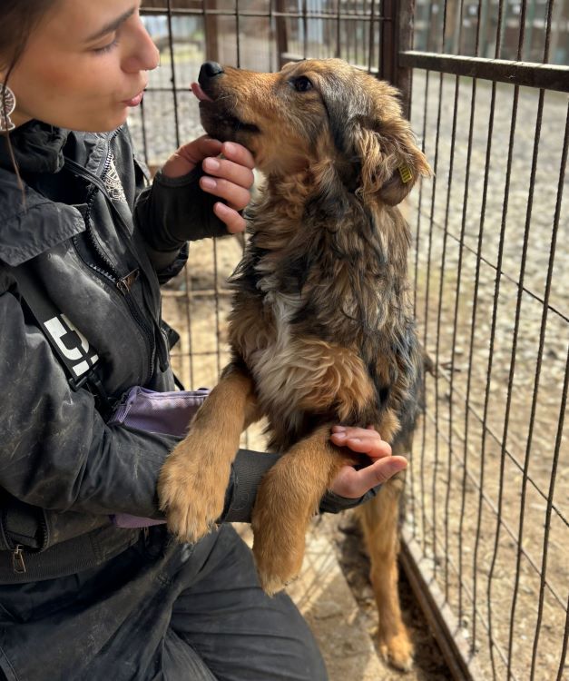 Dieser wunderschöne junge Rüde zeigte sich von der ersten Sekunde an sehr freundlich und interessiert. Als wir den Kennel betraten, konnten wir ein liebevolles Spiel zwischen ihm und einem kleineren aufgeweckten Rüden beobachten. Obwohl FLUFFY viel größer ist, blieb er durchgehend nett und fair ihm gegenüber. Diese Sorglosigkeit im doch so tristen Shelter-Alltag zu sehen, berührte uns sehr.