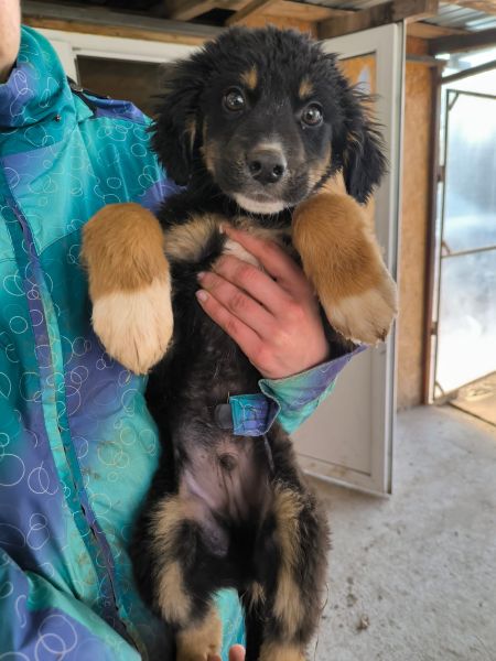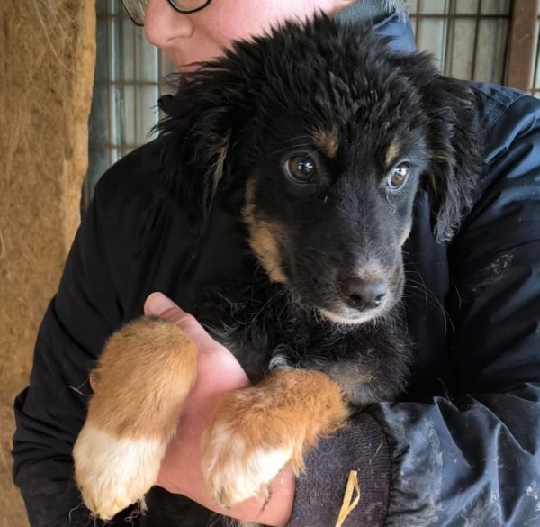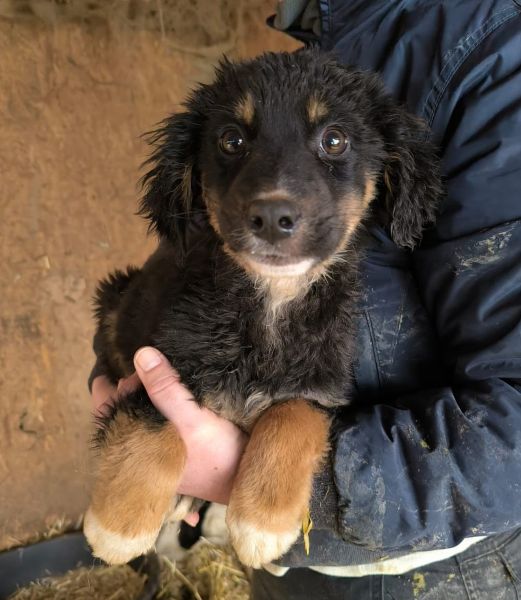 | Wesen & Zutraulichkeit (Character & Trustworthiness) | welpentypisch (typical for puppies), verspielt (playful), offen (open), freundlich (friendly), neugierig (curious), überall anfassbar (touchable everywhere) |