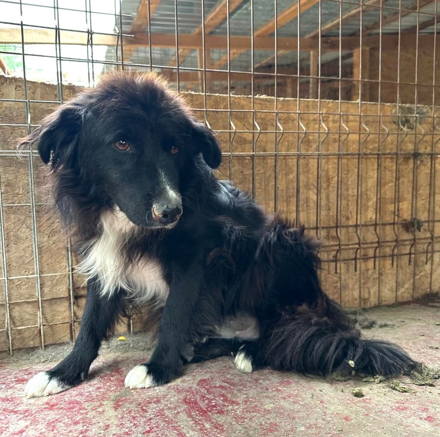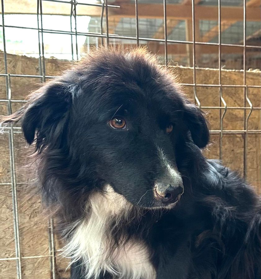 Der wunderschöne FRIDO, mit seinem etwas längeren, weichen Fell und den goldbraunen Augen, ist – wie die meisten in seinem Kennel, während unseres Besuchs zurückhaltend, aber sehr lieb.