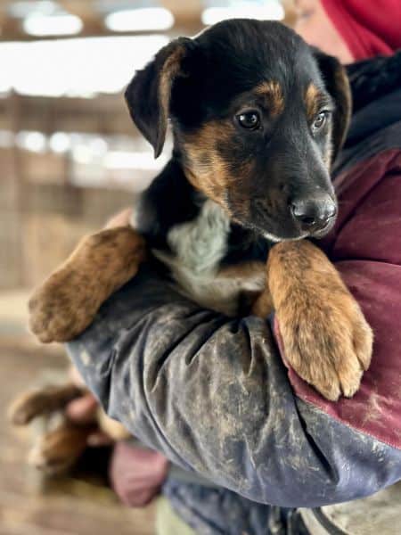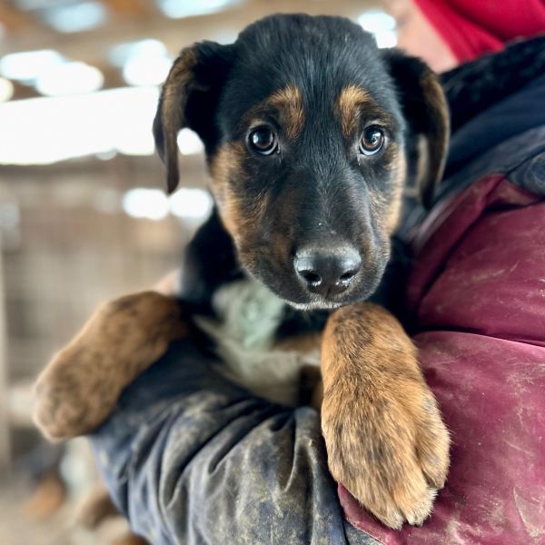 | Wesen & Zutraulichkeit (Character & Trustworthiness) | welpentypisch (typical for puppies), verspielt (playful), offen (open), freundlich (friendly), neugierig (curious), überall anfassbar (touchable everywhere) |