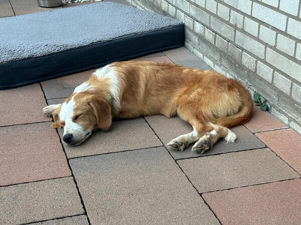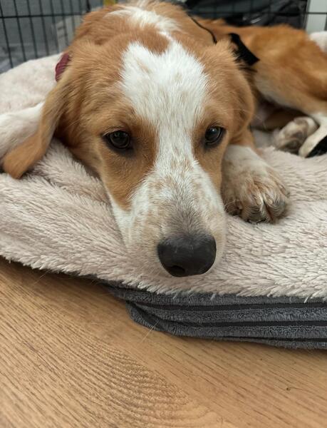 Frolic ist seit Ende Juni 2025 auf seiner Pflegestelle und kommt Tag für Tag immer mehr an.