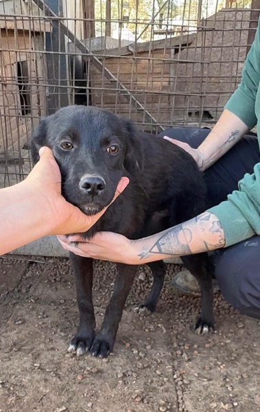 Funny hat sich leider sehr unsicher entwickelt. Sie ist vor uns geflüchtet und hat auch halbherzig geschnappt, als wir sie hochgehoben haben. Als wir sie einmal hatten, hat sie kein Abwehrverhalten mehr gezeigt und wir konnten sie gut anfassen und streicheln. Funny sucht dringend einen Platz bei erfahrenen Menschen. Mit Artgenossen ist sie verträglich und sollte nach Möglichkeit Zweithund werden.