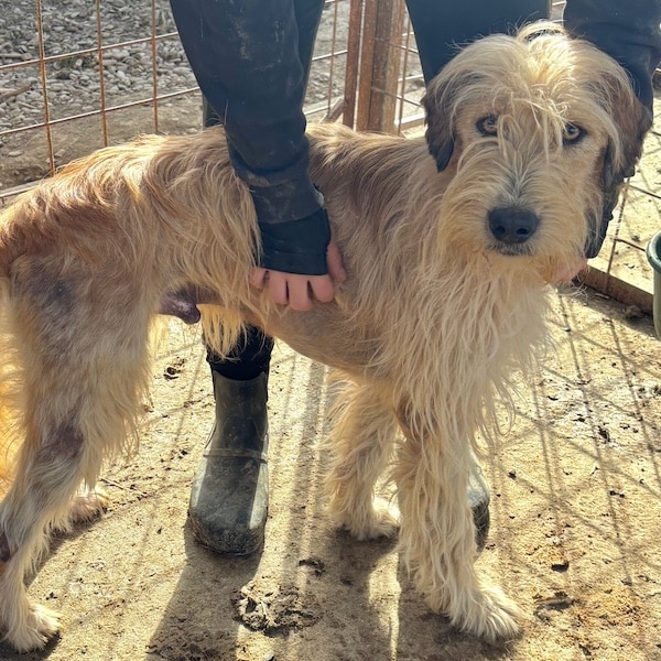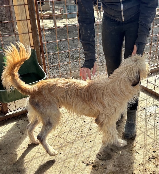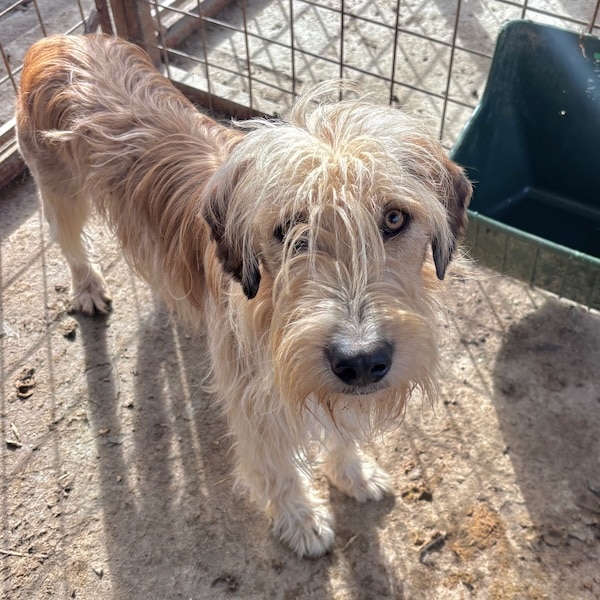 FUZZI ist ein echter Traum in creme-beige. Mit seinem wuscheligen Fell ist er nicht nur ein absoluter Hingucker, sondern vom Charakter her auch ein Herzenshund durch und durch. Offen und freundlich geht er auf uns Menschen zu, er lässt sich überall gern anfassen und genießt jede Streicheleinheit. Mit seinen Artgenossen versteht er sich gut – er lebt gemeinsam mit einem weiteren Rüden und einer Hündin gemeinsam in einem Shelter. FUZZI ist neugierig, aufmerksam und bereit, die Welt gemeinsam mit seinem Menschen zu entdecken. Wer ihn an seiner Seite hat, gewinnt bestimmt einen treuen Begleiter.