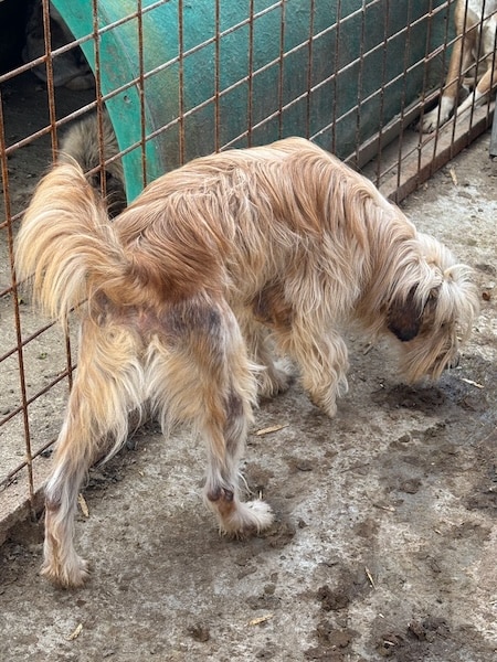Unser süßer FUZZI hofft mittlerweile seit vielen Monaten vergeblich auf seine Chance. Bei diesem Besuch fanden wir den armen Kerl viel zu dünn und mit Hautproblemen vor. Er wird bereits seit einiger Zeit behandelt, doch wirklich besser wird es wohl erst in einer sauberen und stressfreien Umgebung werden. Gern ließ FUZZI sich streicheln und suchte rührend unsere Nähe, ohne dabei aufdringlich zu sein. Wir bemerkten, dass ein anderer Rüde Aggressionen explizit gegen FUZZI zeigt, doch während wir im Kennel waren, blieb es nur bei Drohungen. Als wir am nächsten Tag im Nachbarkennel waren, eskalierte es hingegen. Der arme Bub kam mit einem Schrecken und kleinen Löchern davon, die umgehend der zuständigen Tierärztin gemeldet wurden. Der angreifende Rüde wurde daraufhin aus dem Kennel geholt und die Dynamik unter den verbliebenen Hunden entspannte sich sofort. Wir wünschen FUZZI, dass er nun endlich gesehen wird und auf der Sonnenseite ankommen und heilen darf. Er sehnt sich nach Liebe und Geborgenheit und in seinem Zustand soll er bitte keinen rumänischen Winter durchstehen müssen.