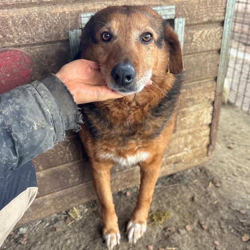 GANDHI schaute uns mit resigniertem Blick an, als wir den Kennel betraten. Sie scheint sich aufgegeben zu haben und wirkt müde. Sie blieb einfach in unserer Nähe liegen, und als sie an der Reihe war, ließ sie sich problemlos streicheln. Die angebotenen Leckerchen nahm sie aus der Hand. Für GANDHI wird es höchste Zeit, in ein ruhiges Zuhause zu ziehen. Wer gibt der sanften Hündin das lang ersehnte Ausreiseticket?