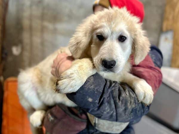 | Wesen & Zutraulichkeit (Character & Trustworthiness) | welpentypisch (typical for puppies), verspielt (playful), offen (open), freundlich (friendly), neugierig (curious), überall anfassbar (touchable everywhere) |