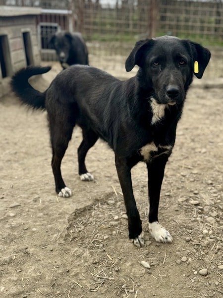 Wunderschöne schwarze, etwas zurückhaltende, aber neugierige Hündin. Sie suchte selbständig den Kontakt zu uns und nahm unsere Leckerchen aus der Hand. Anfassen konnten wir sie noch nicht, Wir sind aber davon überzeugt, dass sie in einer ruhigeren Umgebung schnell auftaut und Vertrauen fassen wird. Ein souveräner Ersthund würde ihr beim Eingewöhnen sicher helfen. Sie lebt mit mehreren Hunden zusammen und scheint dort verträglich.