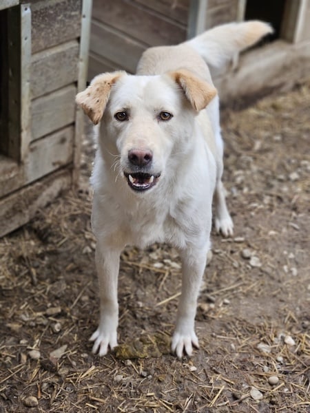 GOETHE ist ein hübscher Rüde, der sich bei unserem Besuch interessiert zeigte, aber anfangs nicht so recht wusste, was er von unserem Besuch halten sollte. Er hielt sich in unserer Nähe auf und kam uns dabei immer wieder ganz nah. Nach einiger Zeit, ließ er sich an der Schnauze berühren. Streicheleinheiten konnte er noch nicht zulassen, dafür fehlte ihm noch etwas Mut. Im Umgang mit den anderen Rüden sowie einer Hündin zeigte er sich durchweg verträglich. Mit etwas Zeit und einem passenden Umfeld kann GOETHE sicher weiter Vertrauen fassen und zu einem tollen Begleiter werden.