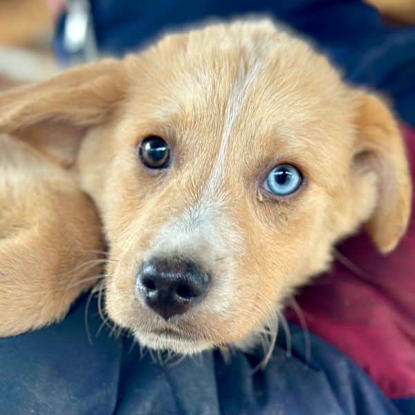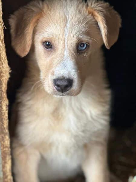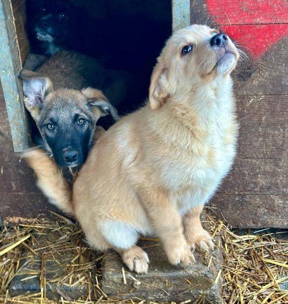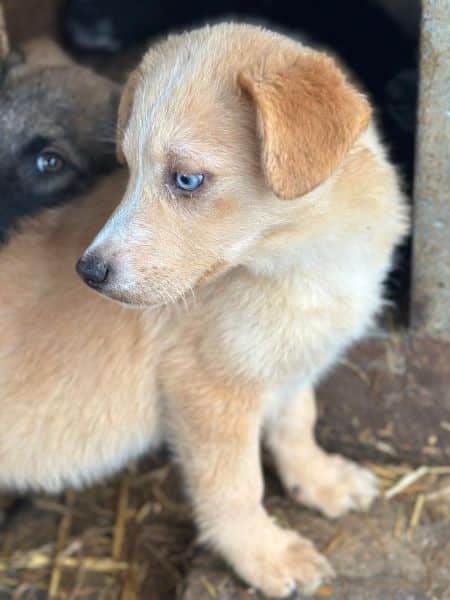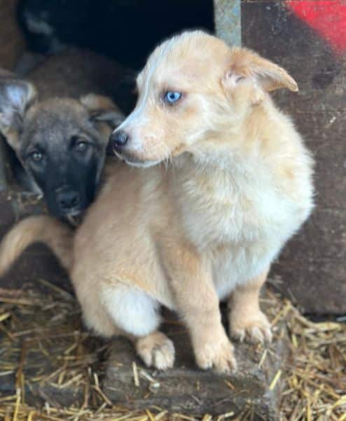 | Wesen & Zutraulichkeit (Character & Trustworthiness) | welpentypisch (typical for puppies), verspielt (playful), offen (open), freundlich (friendly), neugierig (curious), überall anfassbar (touchable everywhere) |