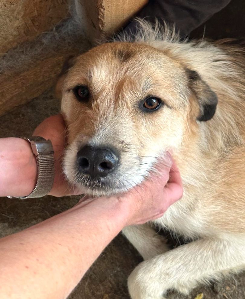 GRISHO ist nach wie vor etwas zurückhaltend, lässt sich jedoch nach kurzer Zeit gut anfassen. Er ist ein toller Hund, freundlich und in seinem gemischten Kennel sehr verträglich.