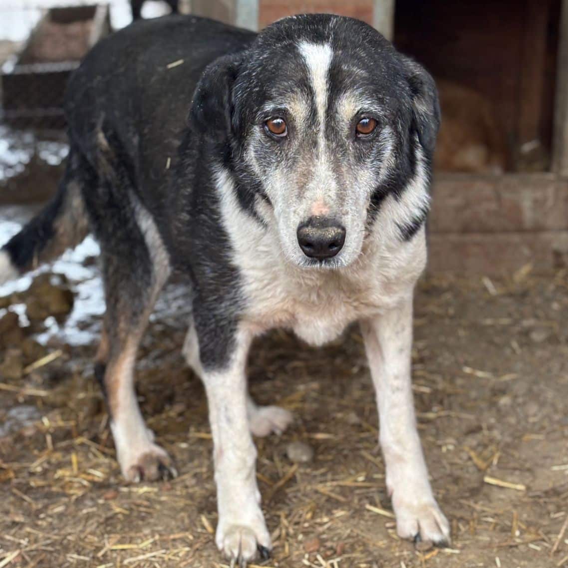 Seit nun fast 5 unglaublich langen Jahren hofft unser süßer GUSS mit dem besorgten Blick bereits vergeblich im riesigen Shelter auf seine Chance und musste dort alt werden. Die Schnute wird immer grauer, sein einst so tolles Stehohr schlapp und die Hoffnung schwindet. Bei unserem Besuch lag GUSS in seiner sicheren Hütte, in der wir ihn erneut problemlos streicheln konnten. Diese intensive Nähe ist noch immer etwas ungewohnt für den herzigen Oldie, doch er macht alles ganz lieb mit. Die mitgebrachten Leckerlie nahm GUSS gern aus der Hand. Wir wünschen dem rührenden Hundeopi, dass er nun doch noch von verständigen Menschen gesehen wird und so wenigstens seinen Lebensabend in Geborgenheit verbringen darf. Mit den anderen Hunden in seinem Kennel zeigt GUSS sich verträglich.