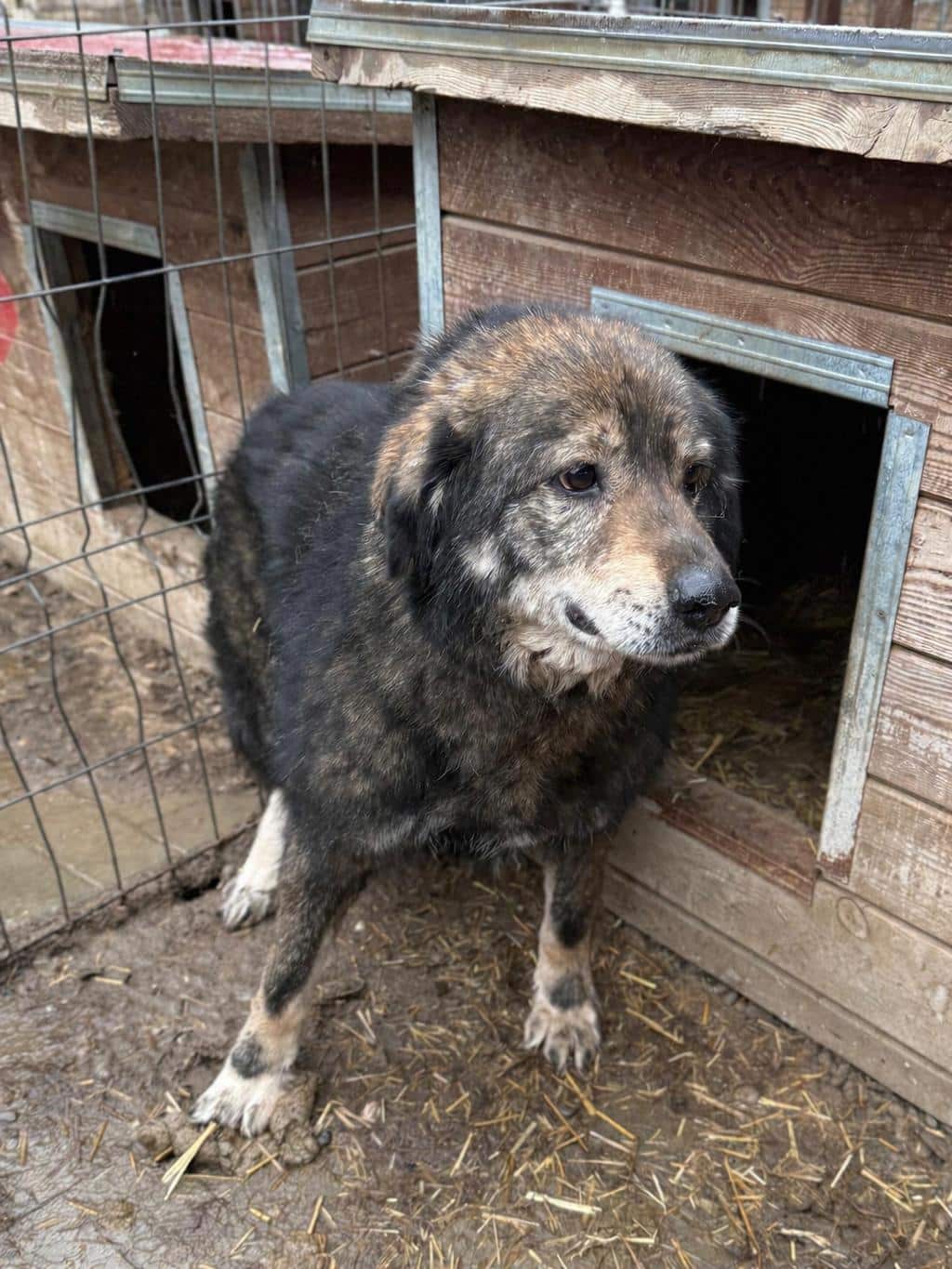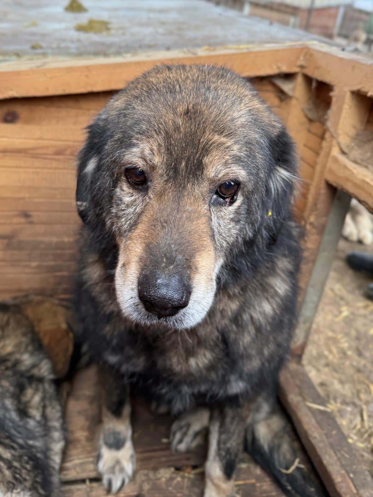 Dieser Rüde hielt sich im Kennel resigniert im Hintergrund auf. Der Kennelchef hält ihn eher bedeckt, sodass er sich lieber in der Hütte aufhält.