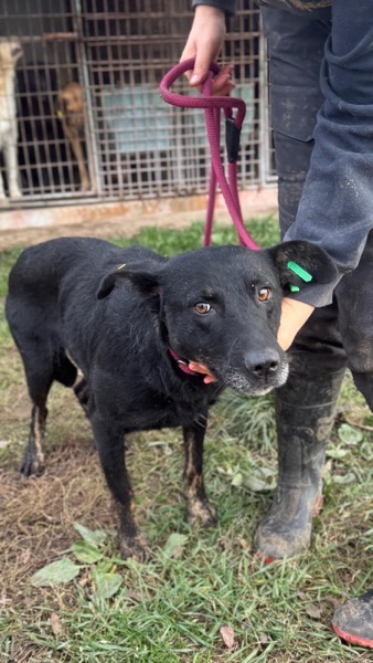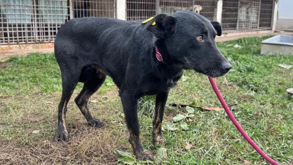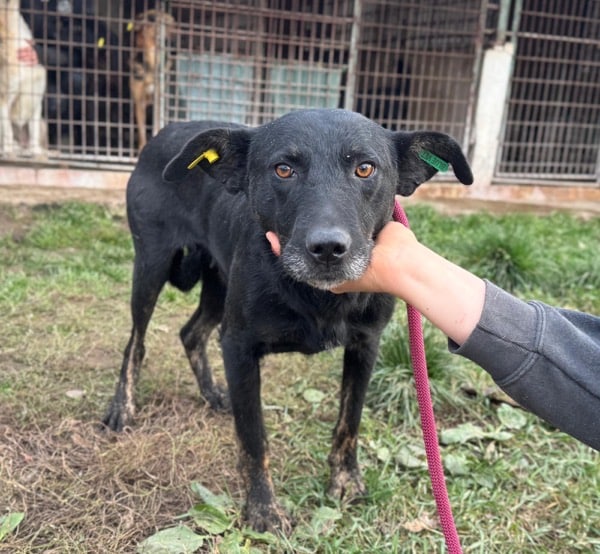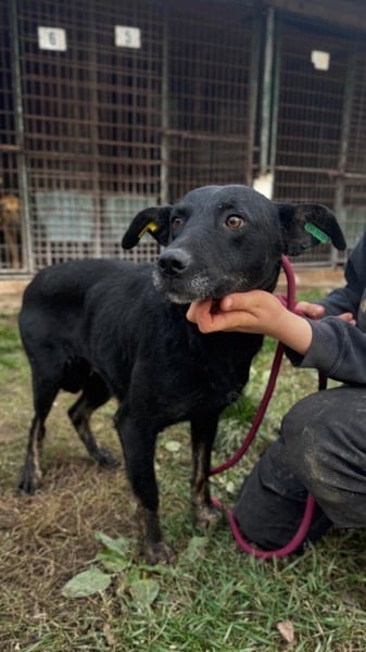 X ist eine freundliche, sehr berührende Hündin. Sie hat ein ausgeprägtes Gesäuge und hatte schonmal Welpen. Aktuell sitzt sie im Vetkennel. Dort zeigte sie sich zunächst eher zurückhaltend und stand in der zweiten Reihe. Als wir uns mit ihr beschäftigten, ließ sie sich gut überall anfassen und streicheln und zeigte sich sehr menschenbezogen und lieb. Sie ist einfach kein Hund, der sich vordrängelt, und wartet geduldig ab, bis sie an der Reihe ist. Für bessere Bilder nahmen wir sie an der Leine mit aus dem Vetkennel, was super klappte. Sie ging gut mit und suchte auch hier wieder unsere Nähe, um sich streicheln zu lassen. Leider ist X aktuell viel zu dünn. Eine ganz bezaubernde Lady, die hoffentlich bald gesehen wird, damit sie nicht in einen Außenkennel umziehen muss!