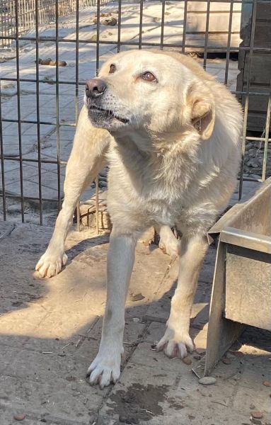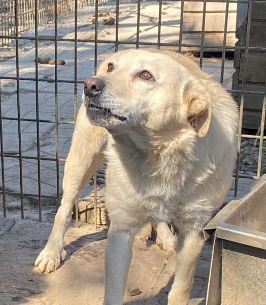 Diese Hündin verbellte uns bei unserem Besuch zunächst, sodass wir sie im ersten Moment nicht unbedingt für freundlich hielten. Im weiteren Verlauf zeigte sich jedoch, dass hinter ihrem Verhalten vor allem Unsicherheit und Angst stecken. In einer geschützten Ecke des Kennels konnten wir uns vorsichtig an sie herantasten und sie schließlich auch streicheln.