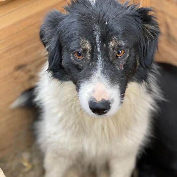 Diese Hündin zeigte sich bei unserem Besuch unsicher und zurückhaltend und zog sich zunächst in ihre Hütte zurück, als wir den Kennel betraten. Insgesamt wirkte es so, als würde sie innerhalb ihrer Gruppe eher eine untergeordnete Rolle einnehmen. In ihrer Hütte ließ sie sich vorsichtig streicheln und zeigte sich dabei ruhig, wenn auch noch verhalten. Als wir den Kennel verließen, kam sie jedoch wieder aus ihrer Hütte und bewegte sich frei – ein schönes Zeichen dafür, dass ihr Interesse da ist und sie sich Schritt für Schritt traut.