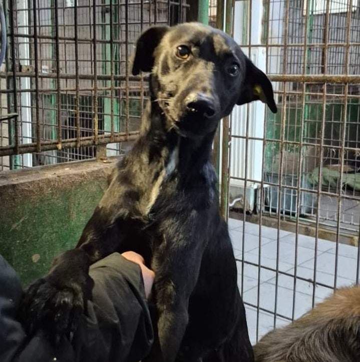Diese hübsche, schwarze Hündin ist erst seit Kurzem im Shelter aber schon unglaublich sanft und menschenbezogen. Sie suchte aktiv die Nähe, schmiegte ihr Köpfchen in die Hand und genoss jede Streicheleinheit sichtlich. Mit ihrem ruhigen, ausgeglichenen Wesen verzauberte sie uns sofort. Leckerchen nahm sie gern an – zum Glück – denn sie ist aktuell noch zu dünn. Jetzt fehlt ihr nur noch ein liebevolles Zuhause, in dem sie ankommen und aufbauen darf.