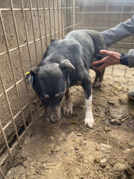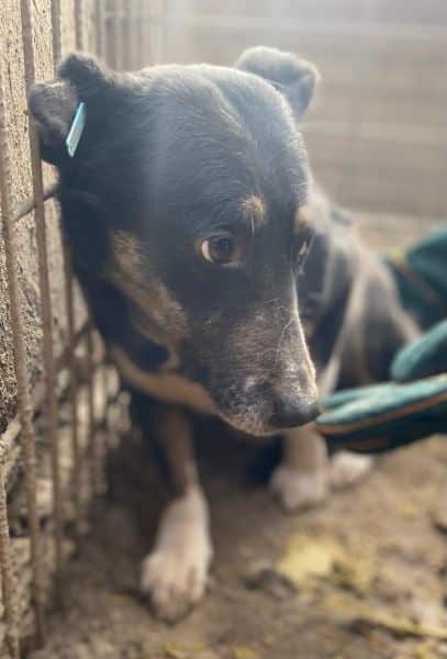 Diese Hündin lebt bereits seit etwa vier Jahren im Shelter und zeigte sich bei unserem Besuch zurückhaltend und unsicher. Sie flüchtete eher vor uns in eine Ecke, wo wir sie vorsichtig streicheln konnten – sie reagierte dabei defensiv und hielt den Kontakt aus, ohne dabei jedoch in Panik zu verfallen..