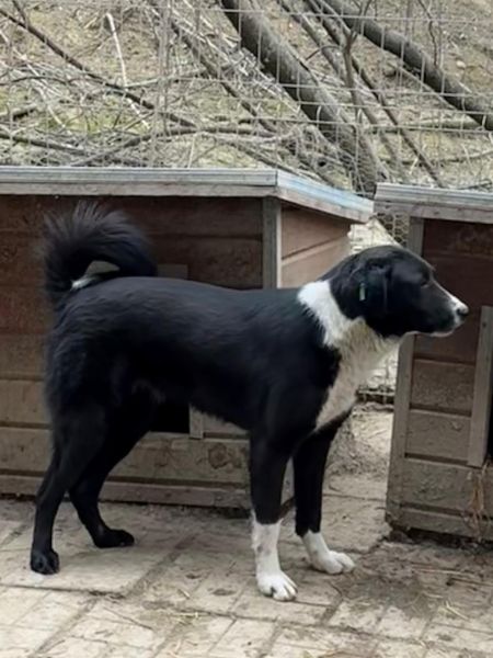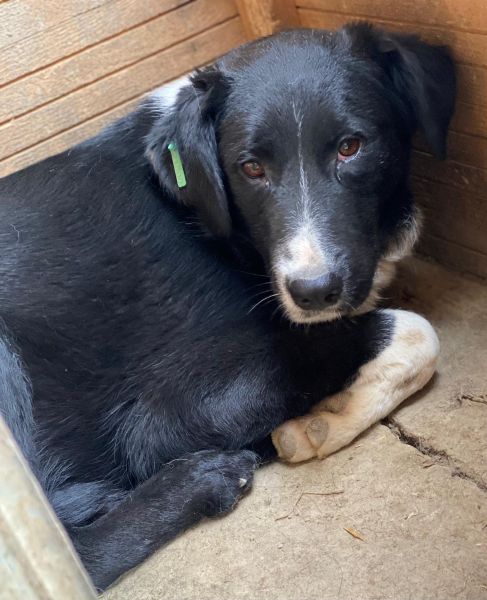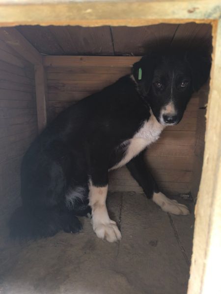 Diese Hündin zeigte sich bei unserem Besuch unsicher und zurückhaltend und zog sich zunächst in ihre Hütte zurück, als wir den Kennel betraten. Insgesamt wirkte es so, als würde sie innerhalb ihrer Gruppe eher eine untergeordnete Rolle einnehmen. In ihrer Hütte ließ sie sich vorsichtig streicheln und zeigte dabei ein eher halbherziges Abwehrverhalten, ohne wirklich panisch zu reagieren. Als wir den Kennel verließen, kam sie jedoch aus ihrer Hütte, bewegte sich frei – ein schönes Zeichen dafür, dass Interesse und Mut vorhanden sind.