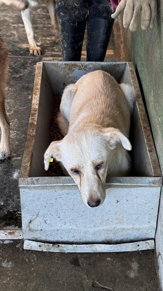 Die süße X ist eine unsichere Hündin, die derzeit in Bucov im Vetkennel sitzt. Sie zitterte, als wir uns ihr näherten und versuchte zu flüchten. Wir konnten sie zwar anfassen und sie schnappte auch nicht, aber versuchte konstant, reißaus zu nehmen. Wir denken, dass sie den Kontakt mit Menschen einfach nicht kennt. Mit ihren Artgenossen versteht X sich gut und sollte nach Möglichkeit Zweithund werden.