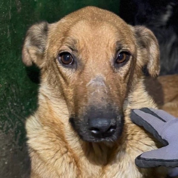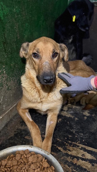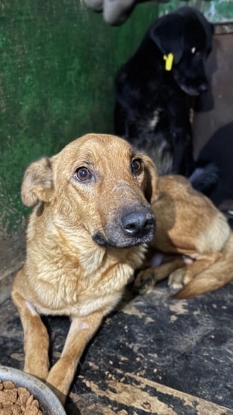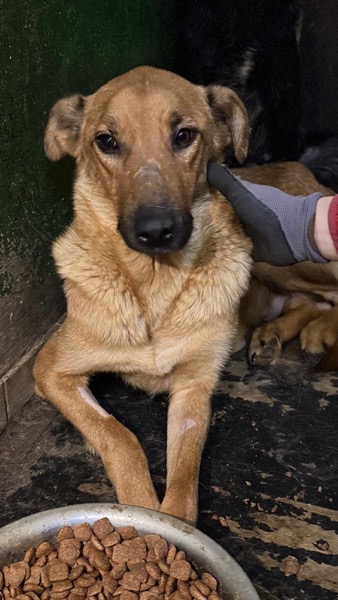 X ist eine freundliche, noch zurückhaltende Hündin. Sie hatte auf jeden Fall schon Welpen und sitzt nun im dunklen Vetkennel in Bucov. Wir konnten sie dort gut anfassen und streicheln, auch wenn sie noch ein wenig unsicher uns gegenüber ist. Dies kann aber auch der Situation geschuldet sein, denn in der sehr kurzen Zeit taute sie bereits etwas auf und berührte uns mit ihrem sanften Wesen sehr. Wir denken, dass sie in einer anderen Umgebung schnell auftauen würde und hoffen, dass sie bald gesehen wird. Mit den anderen Hunden zeigte X sich verträglich.