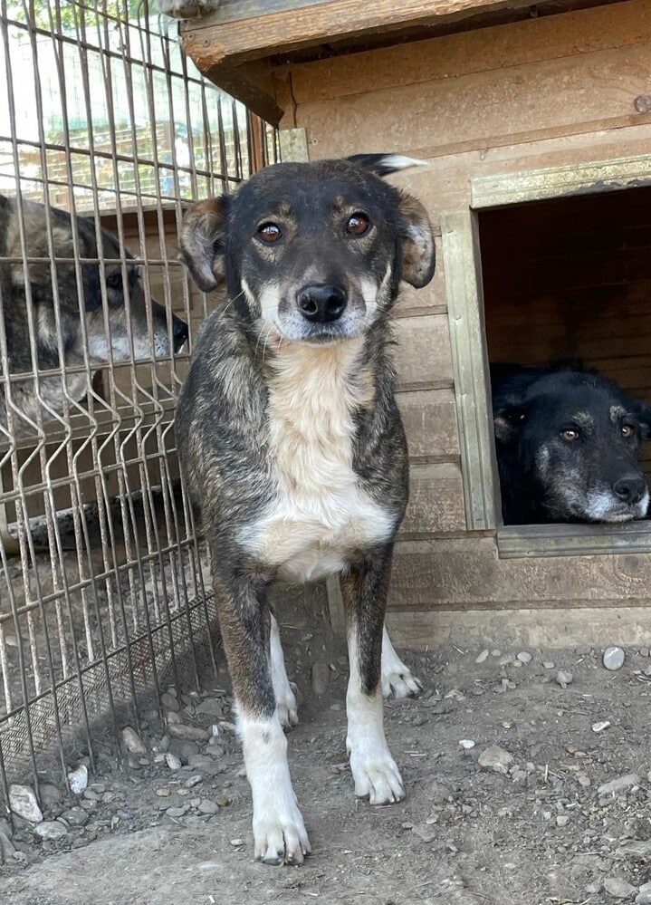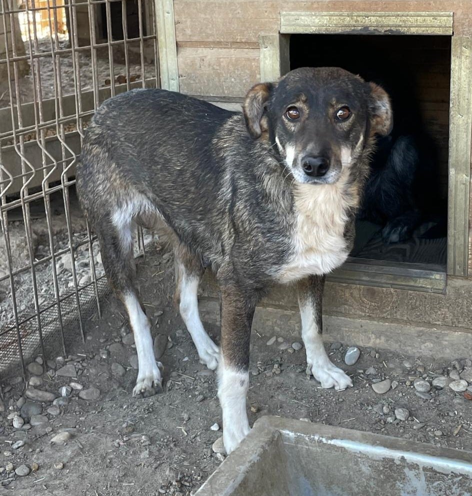 Als sie merkte, dass wir etwas leckeres für sie haben, war sie neugierig und mutig zu uns zu kommen, um sich etwas aus der Hand abzuholen. Dabei half ihr sicherlich eine andere Hündin, die sich bereits souveräner gegenüber dem Menschen zeigt. Anfassen konnten wir sie noch nicht. Mit ausreichend Erfahrung wird man sie jedoch schneller zutraulicher bekommen. Sie wirkt sehr verträglich.