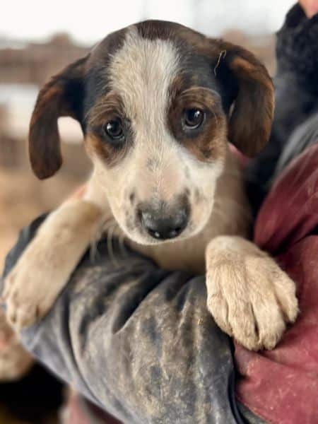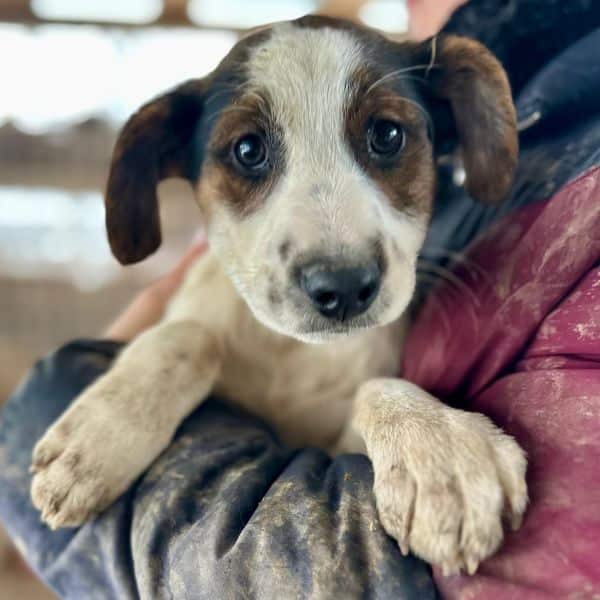 | Wesen & Zutraulichkeit (Character & Trustworthiness) | welpentypisch (typical for puppies), verspielt (playful), offen (open), freundlich (friendly), neugierig (curious), überall anfassbar (touchable everywhere) |