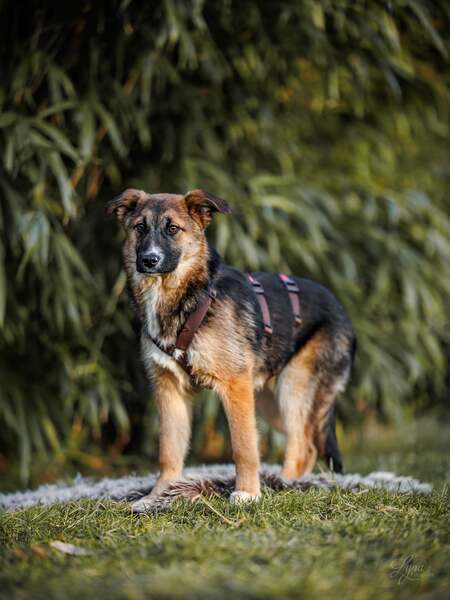 Hani ist vor kurzem aus einem Shelter in Rumänien nach Deutschland gekommen und sucht nun ein liebevolles und geduldiges Zuhause. Im ersten Kontakt zeigt sie sich etwas zurückhaltend. Im Haus ist Hani bereits weitgehend stubenrein und schläft nachts ruhig durch. Autofahrten bereiten ihr keine Schwierigkeiten. Mit anderen Hunden sowie mit Katzen versteht sie sich gut und lebt derzeit problemlos im sozialen Verbund. Im Freien zeigt sich Hani noch unsicher und benötigt Zeit, um sich an neue Situationen zu gewöhnen. Menschen gegenüber ist sie zunächst etwas scheu und braucht meist zwei Minuten, bis sie von sich aus Kontakt aufnimmt. Hat sie Vertrauen gefasst, zeigt sie sich freundlich, verspielt und auch verschmust. Hani ist nicht kastriert, gesundheitlich unauffällig, gechipt, geimpft und entwurmt.
