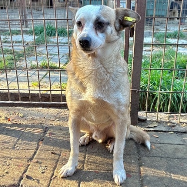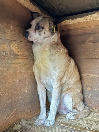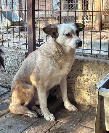 Der kleine cremefarbene Rüde war sehr beeindruckt von der für ihn scheinbar neuen Situation. Er ließ sich in der Hütte bedrängen, den Chip auslesen. Mehr war nicht möglich. Er braucht Zeit und erfahrene Menschen