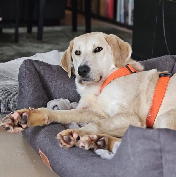 An Grundkommandos haben wir noch nicht gearbeitet aus oben genannten Gründen. Hans ist sehr aufmerksam und das Zusammenleben im Haus unaufgeregt. Haushaltsgeräusche wie Staubsauger, Toilettenspülung, scheppernde Töpfe machen ihm nichts aus. Hans ist sehr ruhig, verbringt viel Zeit in seinem Hundebett. Ob das tatsächlich seinem Wesen entspricht oder noch der Umstellung geschuldet ist, vermag ich nicht zu beurteilen.