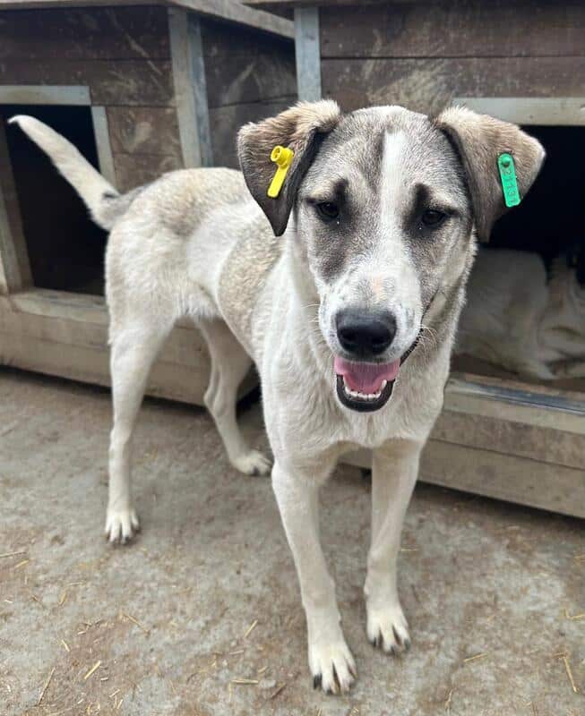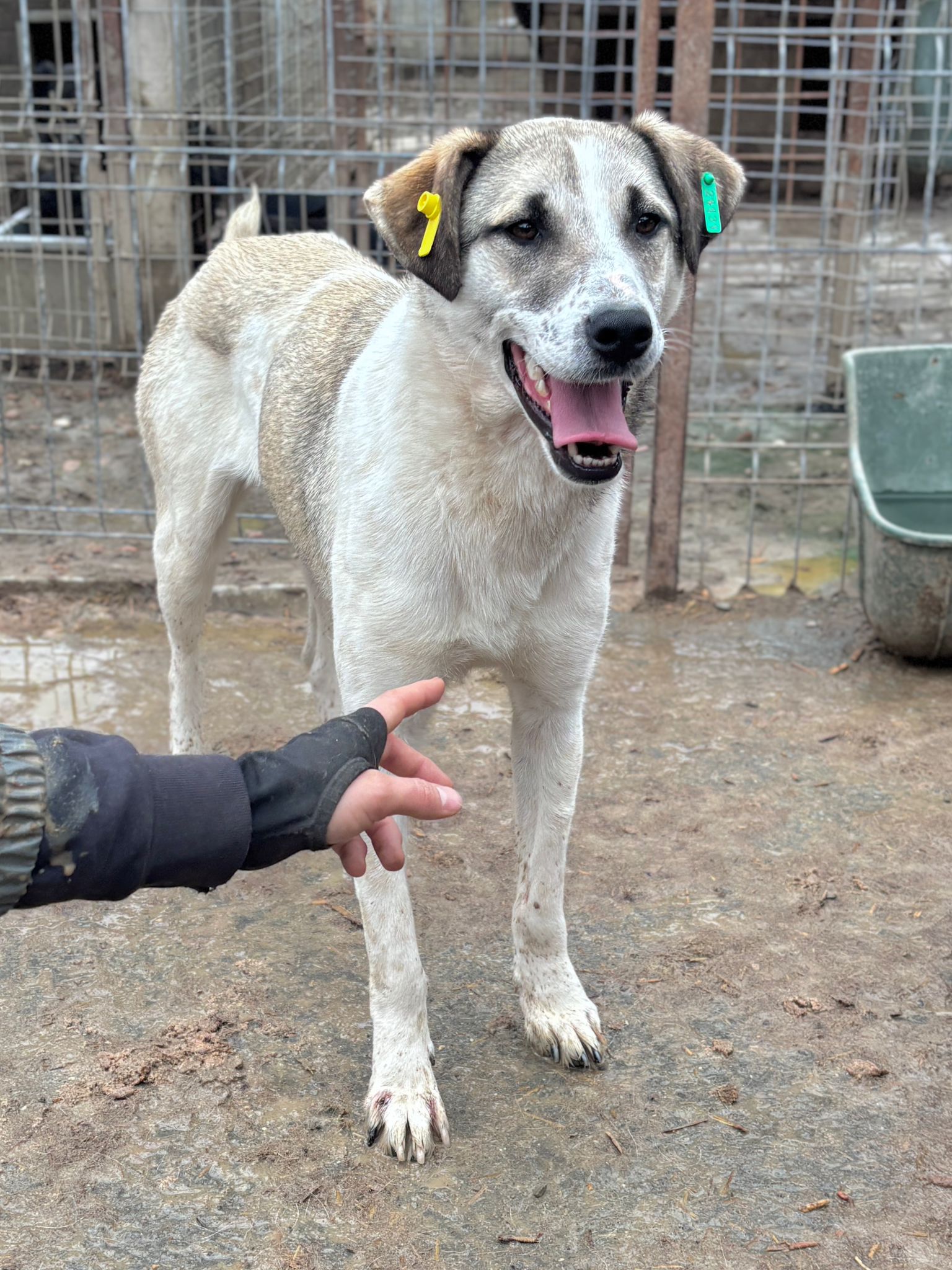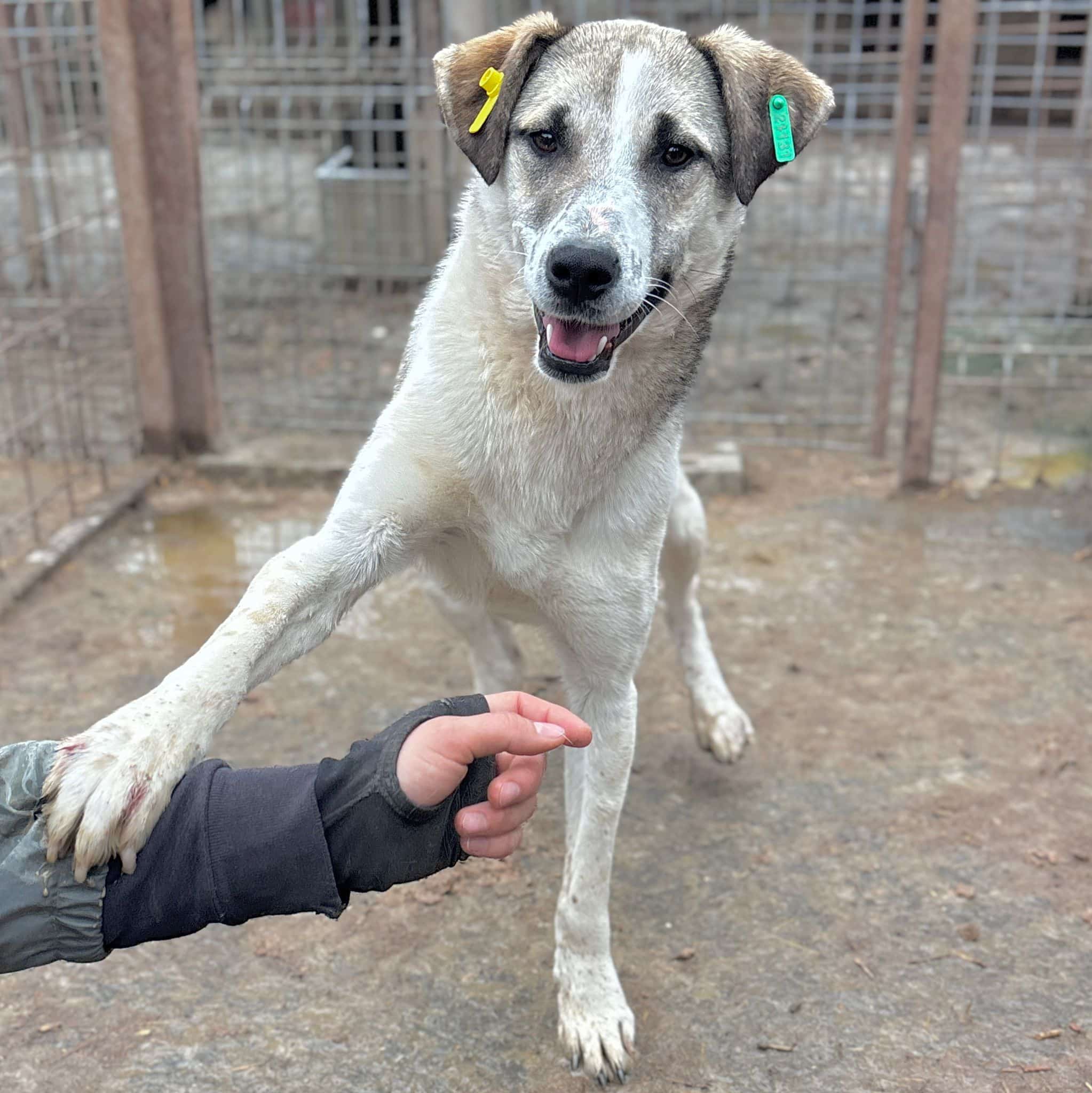 Unsere süße HARRIET hofft nun seit einem langen Jahr im riesigen Shelter auf ihre Chance und musste dort ihre Kindheit verbringen. Bei diesem Besuch fiel uns direkt auf, dass die arme Maus viel zu dünn ist und Verletzungen an den Pfoten hat, was wir der zuständigen Tierärztin meldeten. HARRIET ist ein ganz bezauberndes Hundemädchen, das einen kurzen Moment brauchte, um sich auf uns einzulassen. Die Isolation vor Ort hinterlässt bereits kleine Spuren, doch nach kurzer Zeit war das Eis gebrochen: HARRIET ließ sich gern streicheln, schmiegte sich an unsere Hand und pfötelte spielerisch und rührend nach mehr Zuwendung. Wir saßen noch eine Weile auf einem Hüttendach in ihrem Kennel und HARRIET fiepte leise vor sich hin, stand in der dreckigen Nässe und hat sich vermutlich gefragt, wie lange sie noch an diesem trostlosen Ort ausharren muss… Sie berührte unser Herz sehr und wir wünschen der lieben Maus, dass sie nun endlich gesehen wird, auf der Sonnenseite losleben und all das nachholen darf, was sie bisher verpasst hat. In ihrer gemischten Hundegruppe zeigt sie sich verträglich.