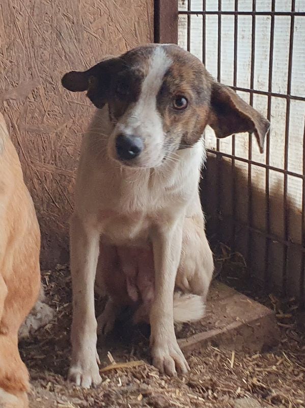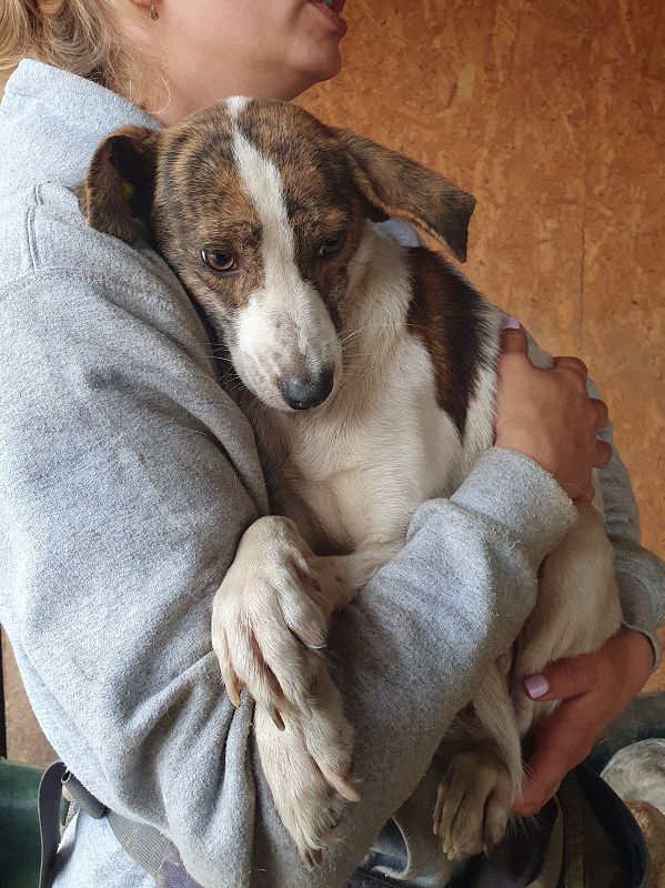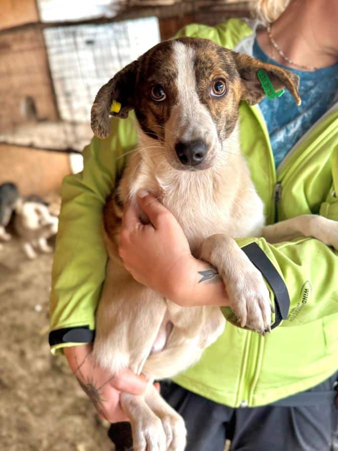 Die wunderschöne, zarte HELEEN zeigte sich anfangs etwas unsicher. Sie hielt sich im Hintergrund, lag still in der Ecke und schien lieber erst einmal zu beobachten. Doch als wir sie auf den Arm nahmen, taute sie langsam auf und nach kurzer Zeit kam sie sogar von selbst wieder zu uns, setzte sich freiwillig auf den Schoß und war einfach nur zauberhaft. Man spürt, dass sie ein wenig Zeit braucht, um Vertrauen zu fassen. Doch wenn man ihr diese Zeit schenkt, wird sie sich sicher zu einer treuen und anhänglichen Begleiterin entwickeln. Sie lebt sie in einem gemischten Rudel und scheint verträglich.