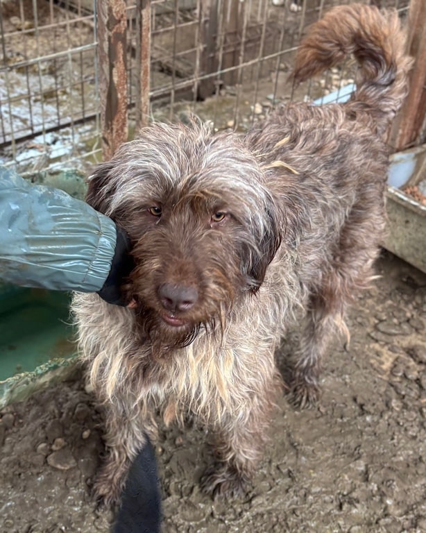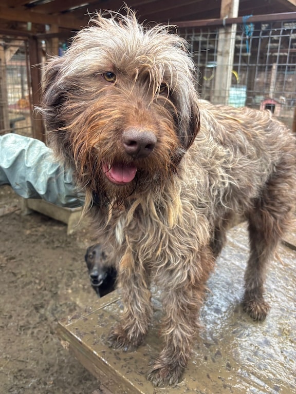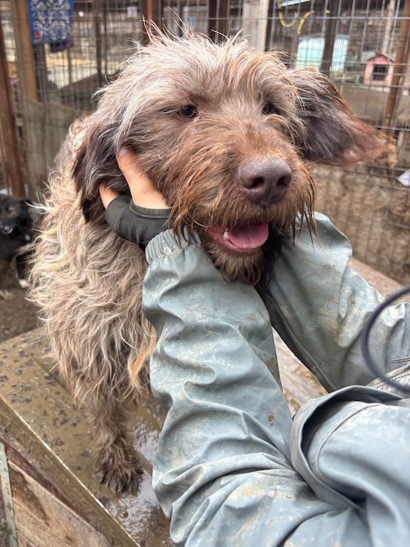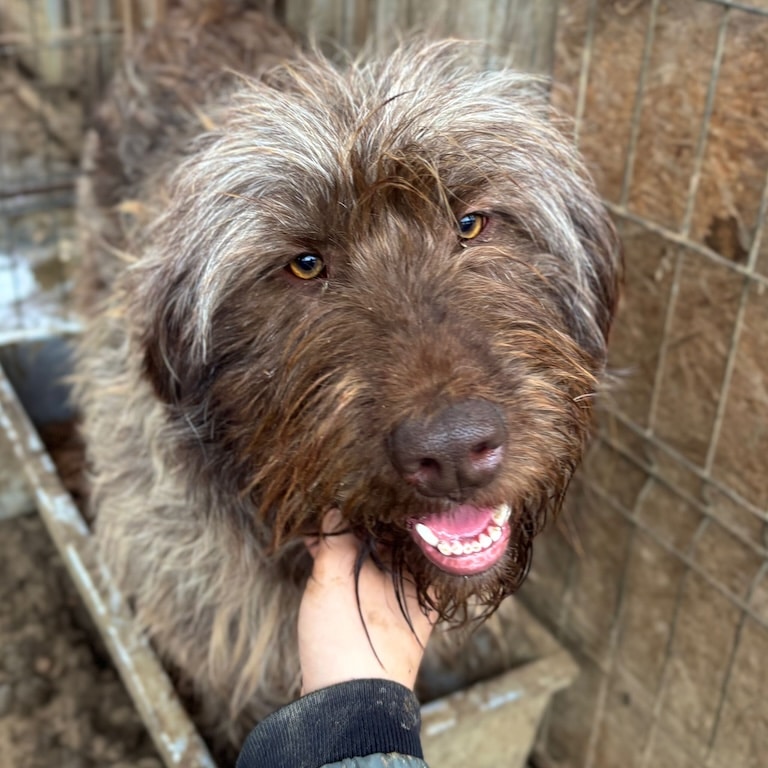 Unsere wunderschöne, stattliche HELENE mit ihren hübschen Augen hofft nun seit einem langen Jahr vergeblich im riesigen Shelter auf ihre Chance. Sie freute sich sehr über unseren Besuch und war direkt zur Stelle, um sich streicheln zu lassen. Sie genoss die seltene Zuwendung sichtlich, ohne dabei aufdringlich zu sein. HELENE verbringt ihre Zeit gern auf dem Hüttendach – vermutlich zum Einen, um den Überblick zu haben, doch aktuell auch, weil der Boden sehr matschig ist. Ihr tolles Fell leidet zudem auch sehr unter den widrigen Bedingungen. Wir wünschen der bezaubernden Maus, dass sie endlich gesehen wird und auf der Sonnenseite ankommen darf. Ihren kleinen Kennel teilt HELENE sich verträglich mit einem großen Rüden und einer weiteren Hündin.