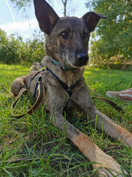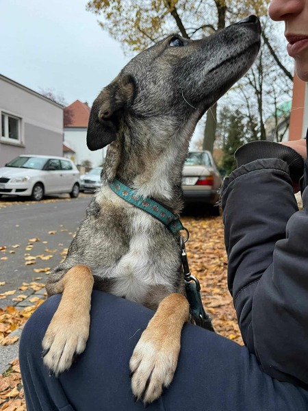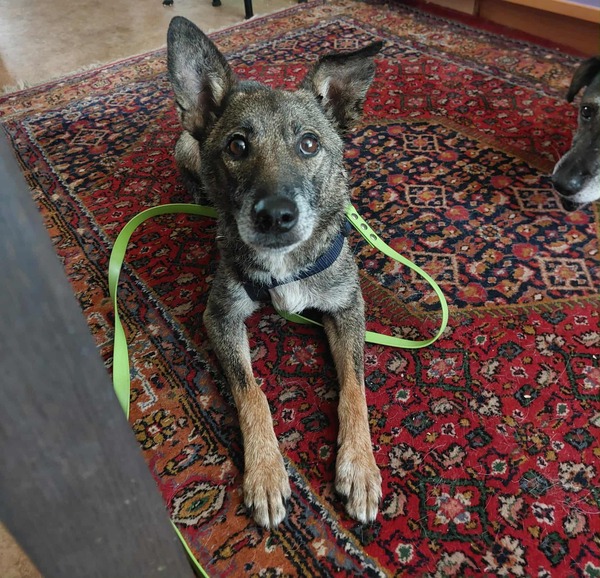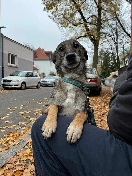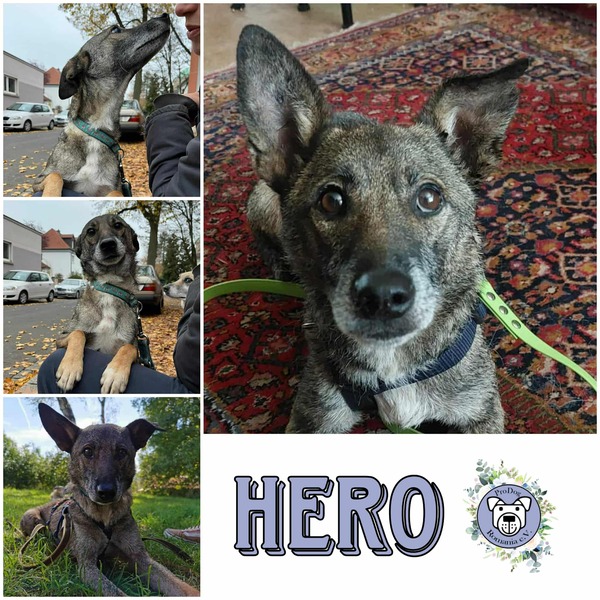 Hero ist ein sehr freundlicher Rüde mit zarter Statur, der seit September 2025 auf seiner Pflegestelle in Oberfranken lebt. Obwohl er zuvor vier Jahre im Shelter ausharren musste, hat er sich super schnell eingelebt und ist einfach ein Traumhund. Hero ist sehr charmant, freundlich und verschmust. Er kuschelt gerne und taut auch bei fremden Menschen schnell auf. Hero ist von Anfang stubenrein und bleibt problemlos eine angemessene Zeit alleine. Er hat ein sehr angenehmes, eher ruhiges Temperament, kann aber auch witzig und verspielt sein. Er geht gerne spazieren und läuft gut an der Leine mit. Sogar auf seinen Namen hört er schon richtig gut. Hero ist gut verträglich mit anderen Hunden und kann daher gerne Zweithund werden – weil er Menschen ebenso gerne mag, wäre er aber auch als Einzelhund glücklich. Normale Umweltreize machen Hero nichts aus. Ist er doch mal verunsichert, so lässt er sich schnell vom Gegenteil überzeugen. Er bleibt in Hundegesellschaft problemlos mehrere Stunden alleine und auch ganz alleine war es bisher über kurze Zeiträume kein Problem (längere wurden bisher nicht ausprobiert, sind aber wahrscheinlich auch kein Problem). Auf seiner PS muss er viel im Auto mitfahren und das klappt auch gut, er ist dabei aber noch gestresst.