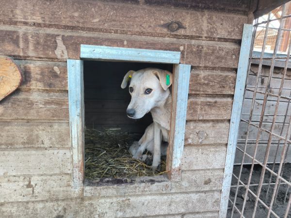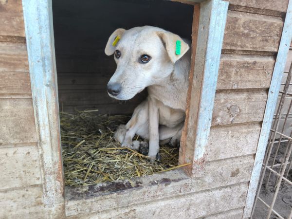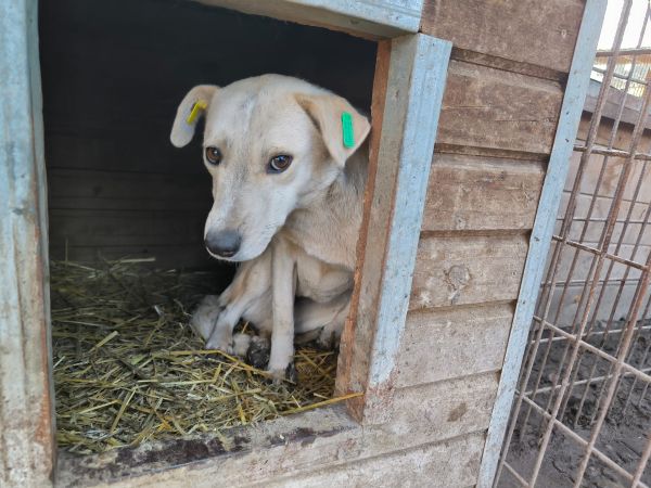 Diese mittelgroße Hundedame fanden wir im Vetkennel. Sie war zunächst sichtlich gestresst von unserem Besuch, nach einiger Zeit gelang es uns jedoch, sie mit der künstlichen Hand zu streicheln. Den Kontakt zum Menschen scheint die süße Hundedame bisher leider nicht zu kennen. Es bleibt zu hoffen, dass sie noch positive Erfahrungen mit Menschen sammeln und bald die Vetkennel verlassen darf – am besten in ein weiches Körbchen und ein warmes Zuhause voller Liebe und Geduld, dass ihr die Zeit gibt, die sie benötigt. Mit allen anderen Hunden in ihrem Vetkennelabteil zeigte sie sich verträglich.