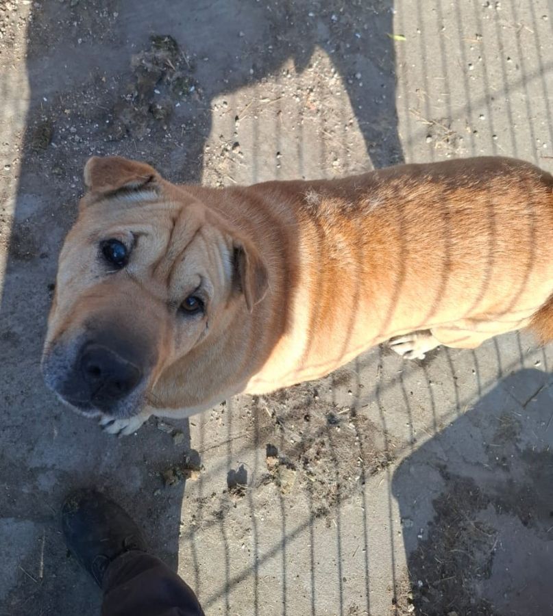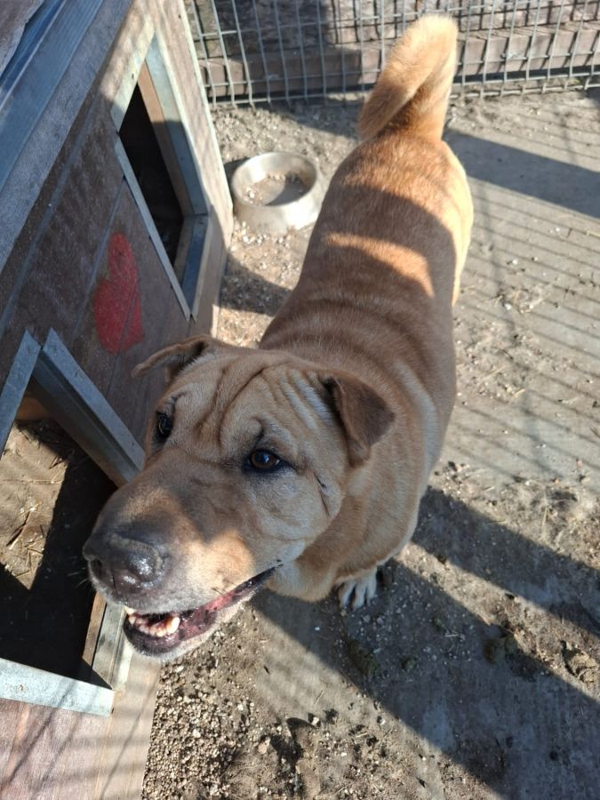 HIDALGO – ein wunderschöner Shar Pei – Mix, gerne anfassbar und freundlich. Ihm läuft seine Lebenszeit davon, während er in seinem trostlosen Kennel sitzt.