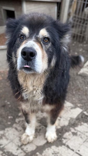 HINNI ist ein neugieriger, sehr ruhiger Herdenschutzhund. Er stand bei unserem Besuch an der Kenneltür und musterte uns erst etwas skeptisch, wedelte dann aber mit der Rute und nahm gerne unsere Leckerlies aus der Hand. Wir konnten HINNI auch am Kopf streicheln, aber genießen konnte er das nicht. Leider ist sein Fell verfilzt. HINNI sitzt in einem Kennel mit zwei großen Rüden und machte mit diesen einen verträglichen Eindruck auf uns.