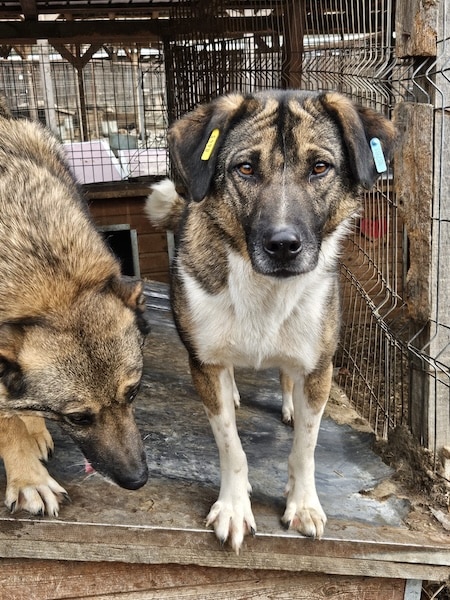 Imma hat ein bisschen mehr Selbstvertrauen erreichen können. Nach einem zögerlichen Anfang konnte sie gut unsere Nähe zulassen und nahm die angebotenen Leckerchen gerne aus der Hand. Das Drängeln ihrer Mitbewohner quittierte sie jedoch am Ende mit Ausweichen; ein etwas ruhigeres Zuhause mit feinfühligen Menschen würde ihr bestimmt helfen. Ein netter Ersthund wäre das I-Tüpfelchen.